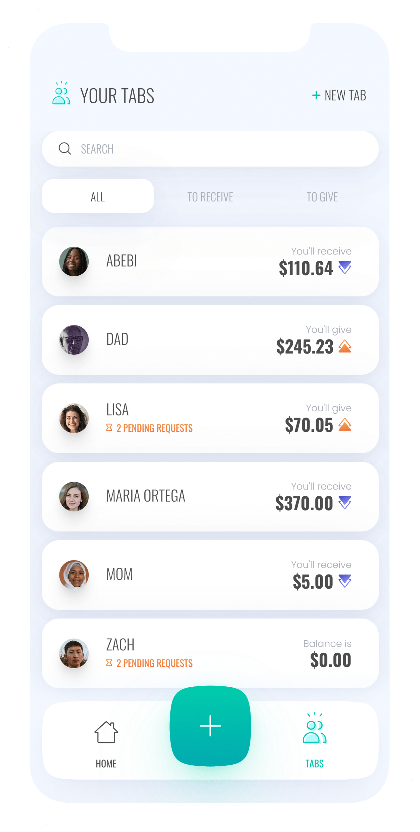 Family and friends help each other, sometimes with money that needs to be returned. Remembering what you need to give and receive is hard. Tabz makes it easy.